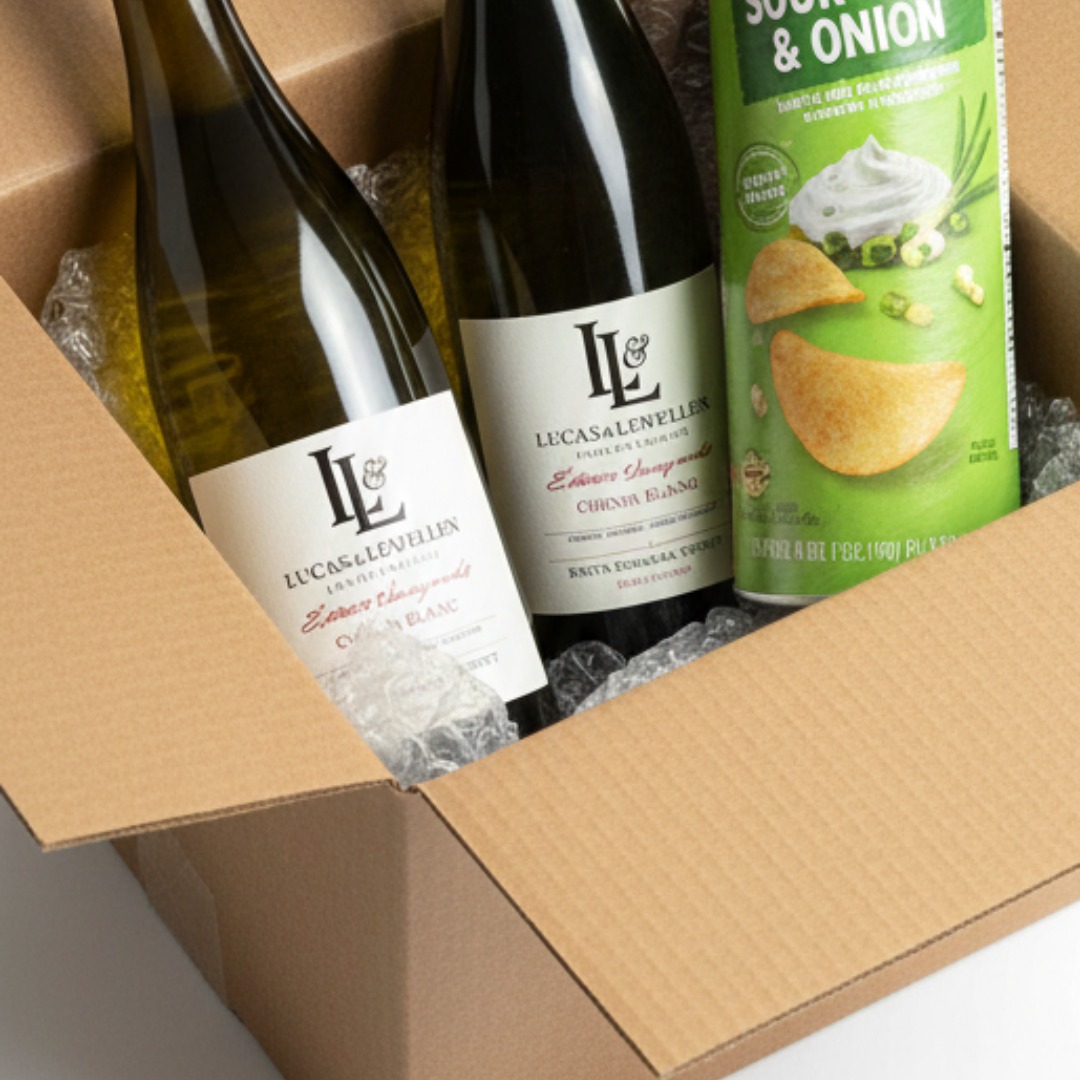 Two bottles (750ml) of our estate-grown Chenin Blanc with one tube of sour cream & onion potato chips