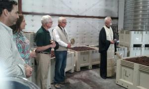 About 20 winery owners, workers and visitors gathered around half a dozen bins filled with clusters of pinot grigio to witnes Father John Finley conduct a blessing of the grapes, asking not only for a good harvest but also a successful fermentation and bottling, ultimately ending with fine vintage varietals on consumers' tables.